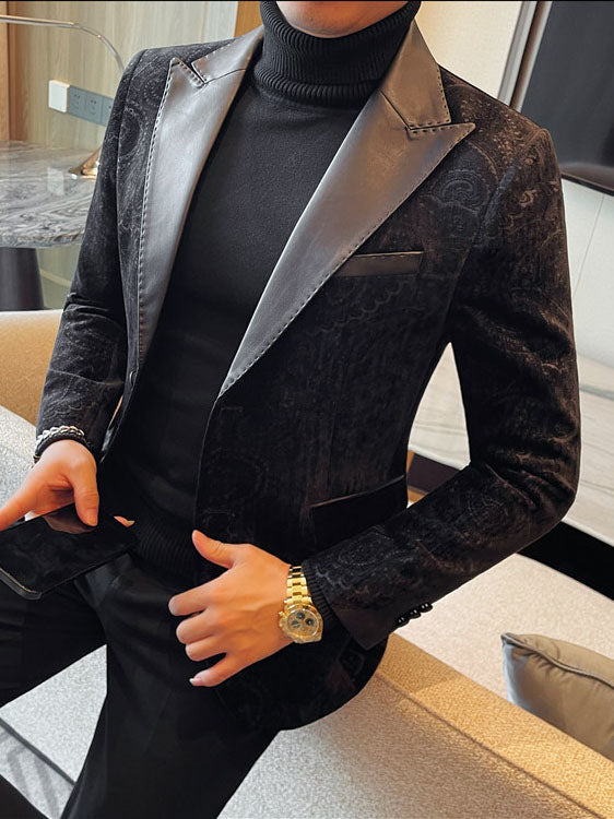 Jacquard Velvet Leather Lapel Men's Blazer
